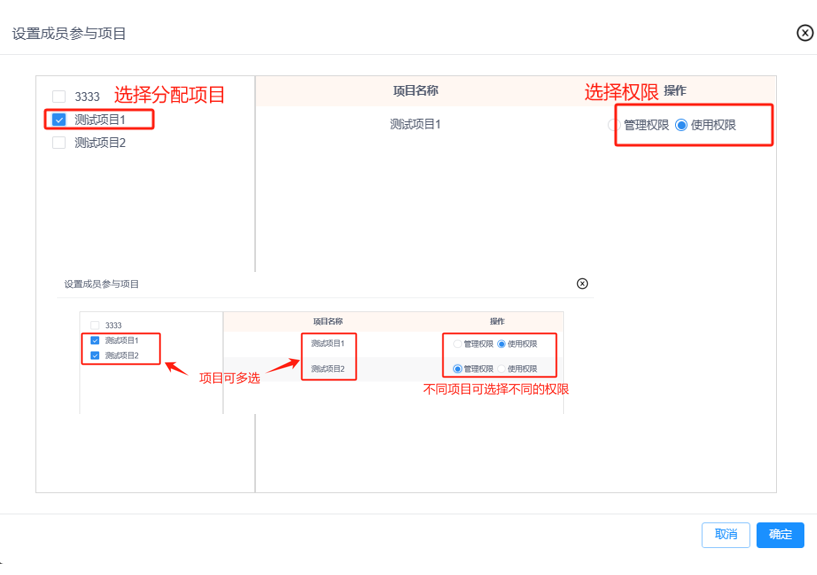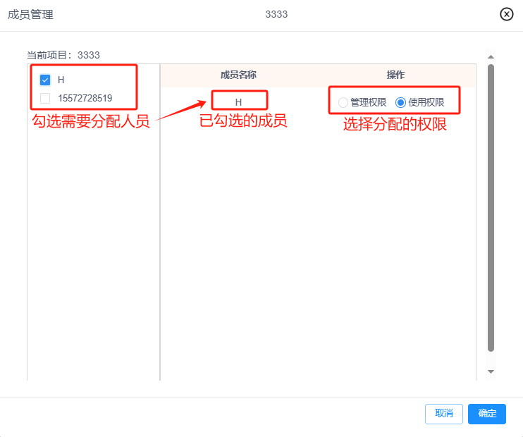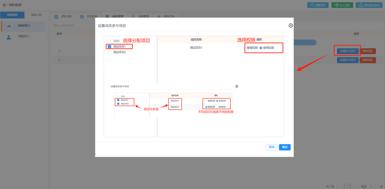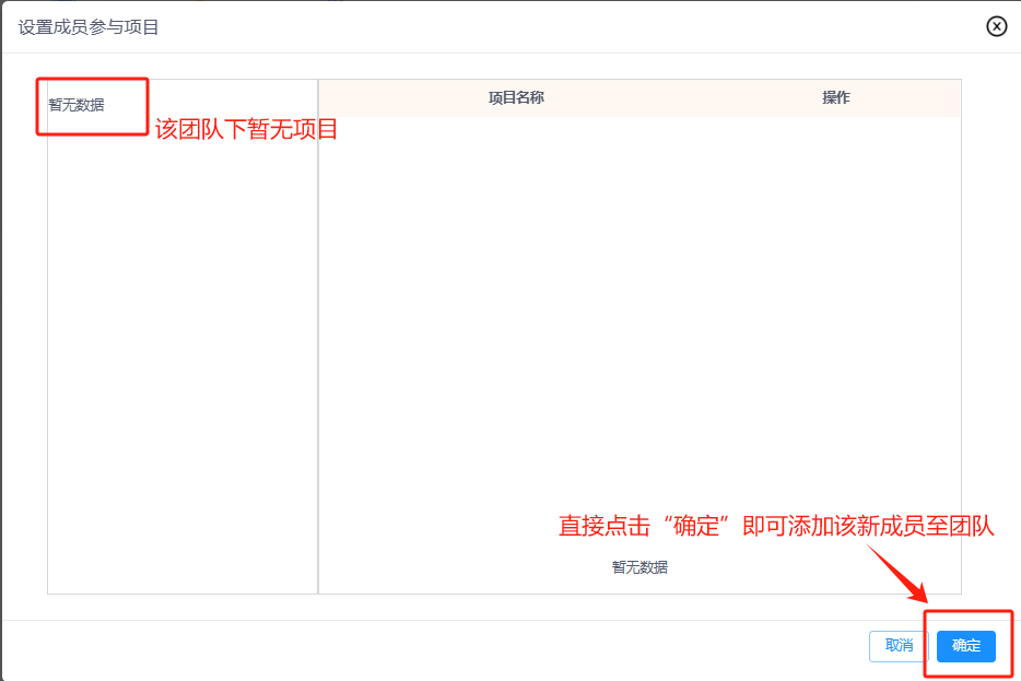 注意:可暂不选择直接点击“确定”即可添加该新成员至团队,可在“成员管理”中单独设置