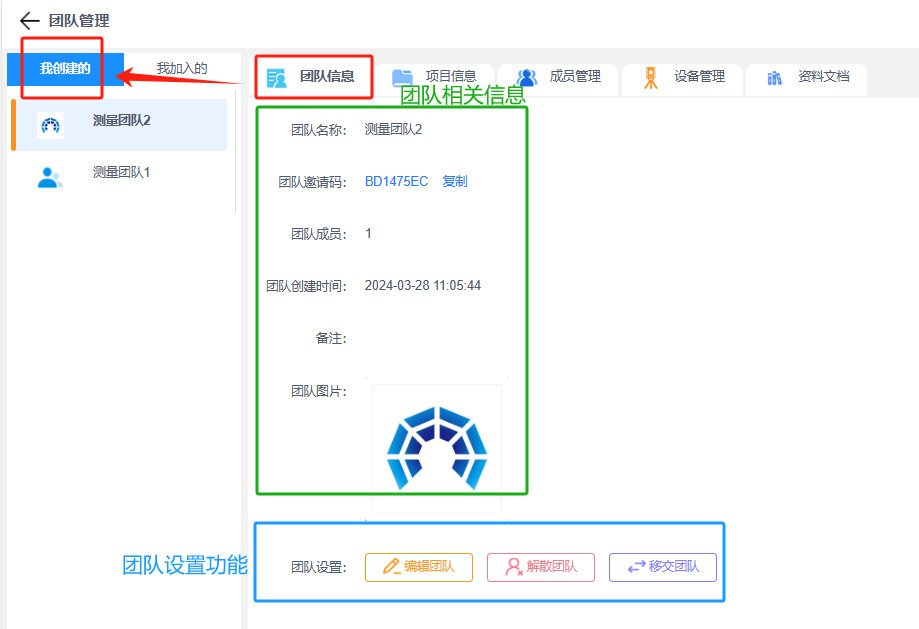 可在团队信息里,查看我创建的团队相关信息和我加入的团队相关信息;也可在团队设置里,对我创建的团队进行编辑团队、解散团队或移交团队的操作,或者对我加入的团队进行退出团队的操作。