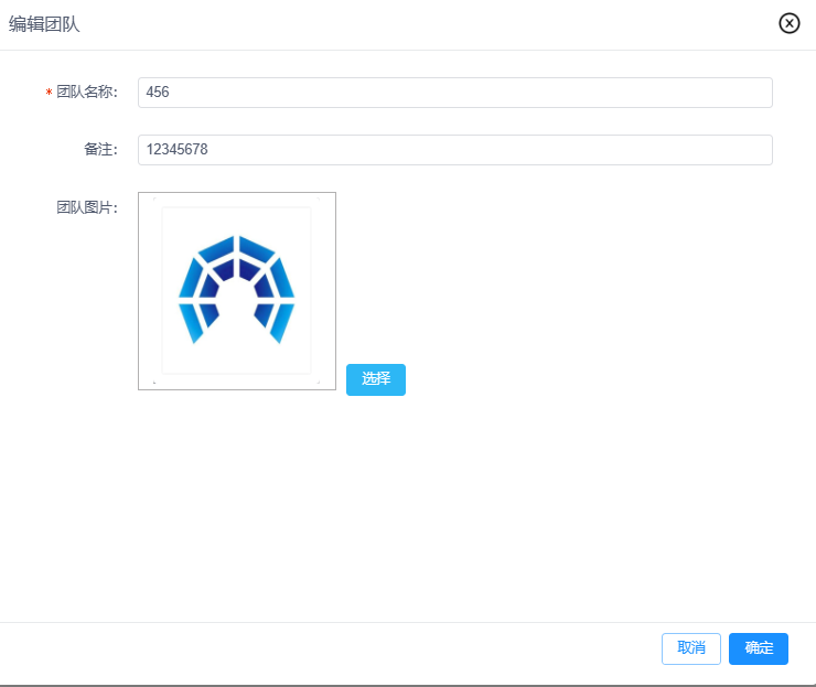 ①编辑团队:可修改团队名称、备注信息或更改团队图片