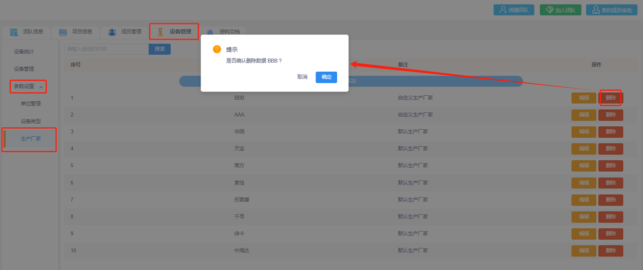 ③删除生产厂家:可删除该生产厂家。