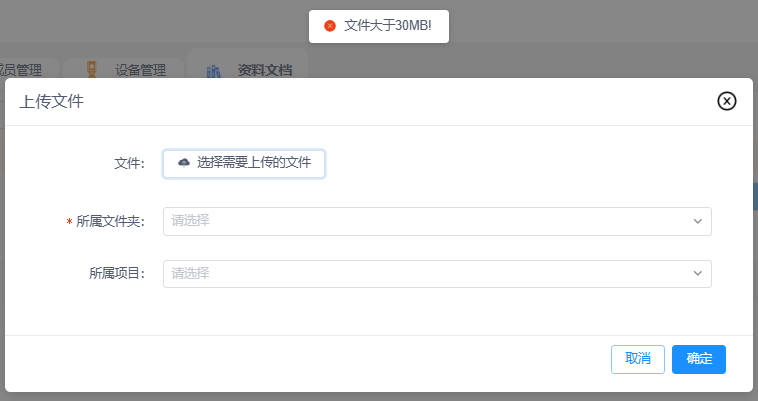 注意:上传的文件大不能超过30M。