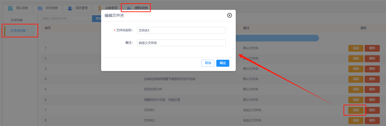 编辑文件夹:点击“文件夹列表-编辑”,可修改该文件夹名称和备注信息。