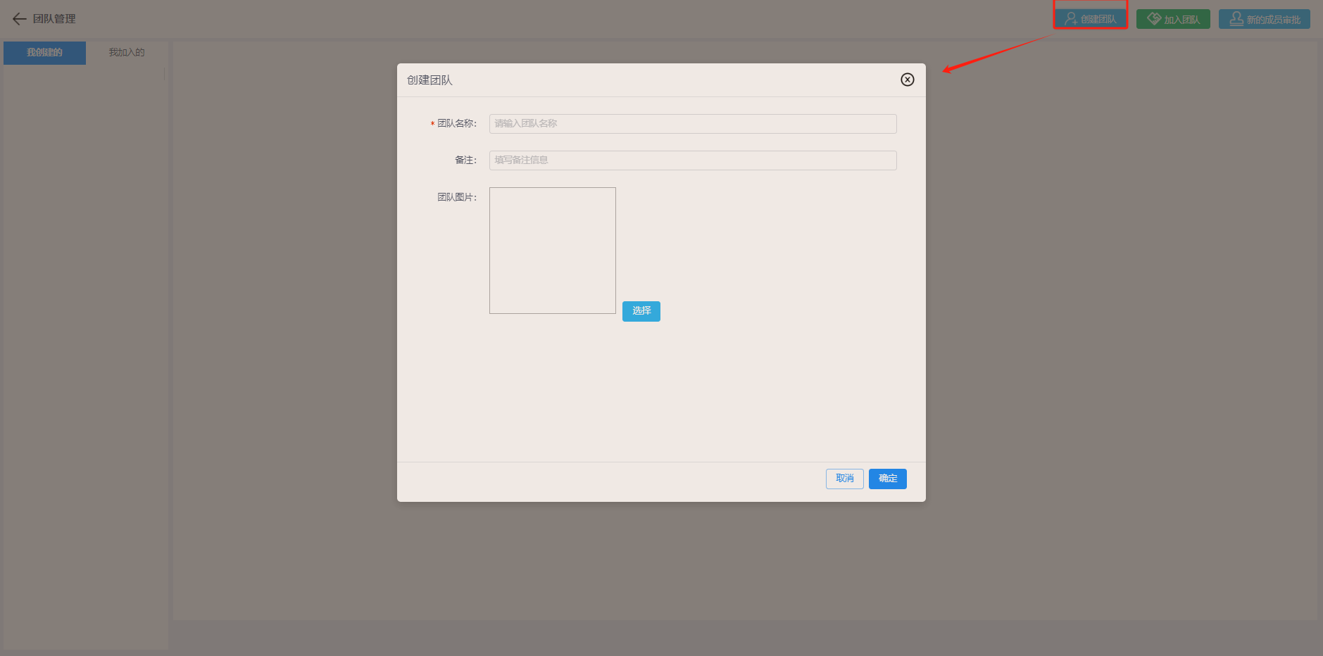 点击右上角“创建团队”开始创建团队。