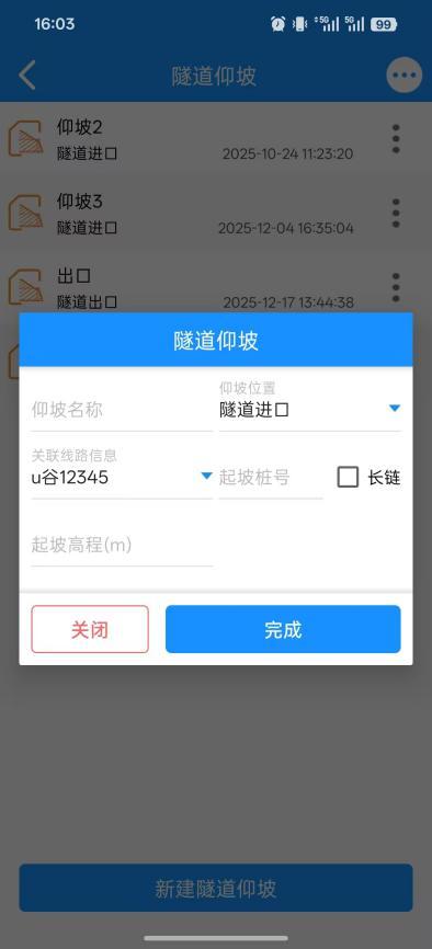 2.关联线路信息:选择该仰坡对应的隧道主线路。