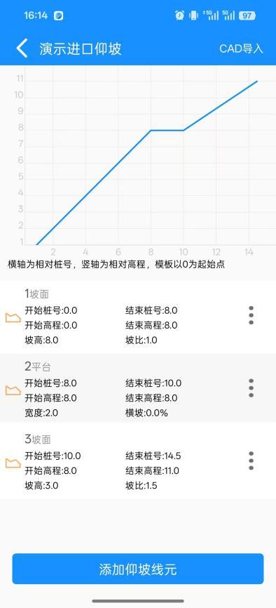 3.到坡面:实测点到设计坡面或平台的垂直距离。