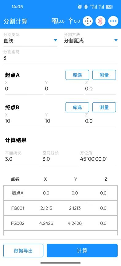 分割计算功能用于按既定规则在直线、圆或圆弧上生成分割点坐标,并给出线长与角度等辅助结果。