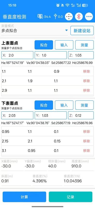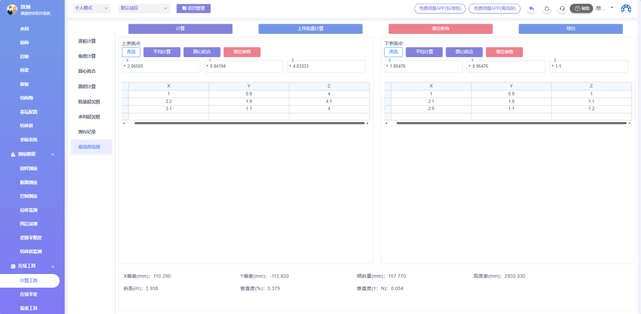 提示:APP与平台数据不同步,已有测量数据可选择在平台计算垂直度。