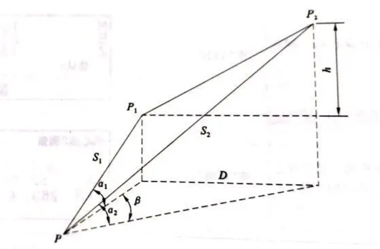 是指通过对两目标点的坐标测量实时计算并显示两点间的相对量,如斜距(S1、S2)、平距(D)和高差(h)。