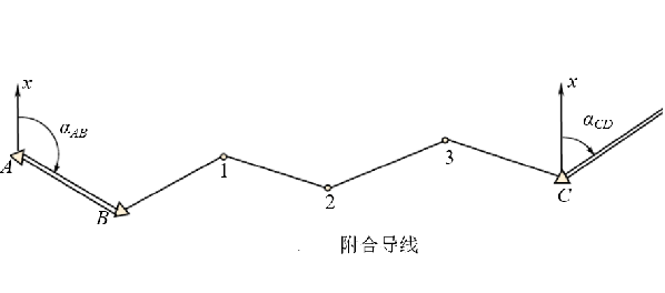 2. 附和导线:从已知边出发(控制点A、B),测量若干个边长和夹角后,到达另条已知边(控制点C、D)的导线测量方法;