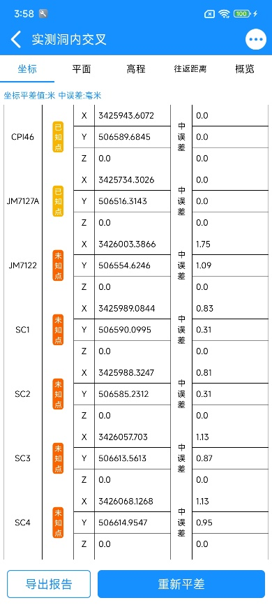 在测站列表点击【任务平差】或测量界面点击【平差结果】进入平差成果页面。