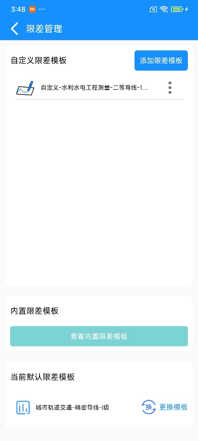 当我们经常使用同一个限差模板时,可设置为默认模板,在后续新建任务时就不需要每次都去选择了。