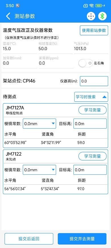③学习测量:当我们需要自动测量时,需要先让软件知道点相对仪器的角距以完成自动转向的功能;