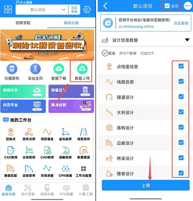 在首页“基础功能”中点击【数据上传】