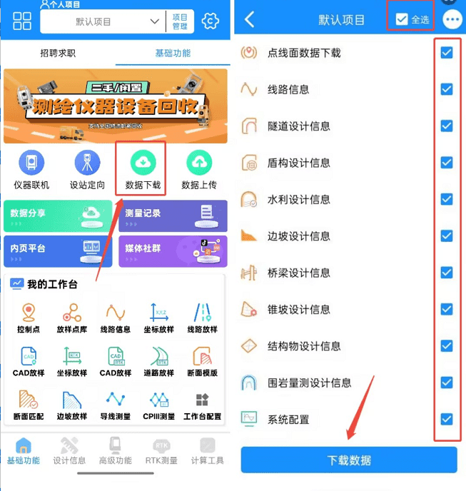 在数据列表中勾选需要下载的内容(默认已全选),确认后点击下载数据