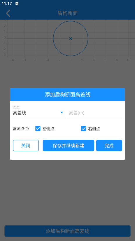 点击“新建盾构断面高差线”,选择高差线类型,需要测量的点位,点击完成即可;