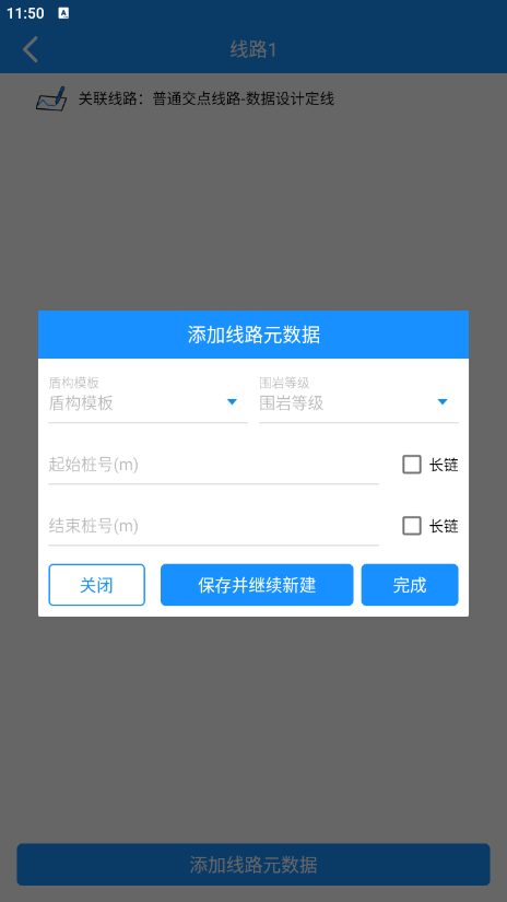 1.点击”添加线路元数据“按钮,添加线元元数据;