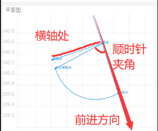 ⑤横轴夹角:线路正向方向朝锥坡横轴顺时针旋转后的角度。
