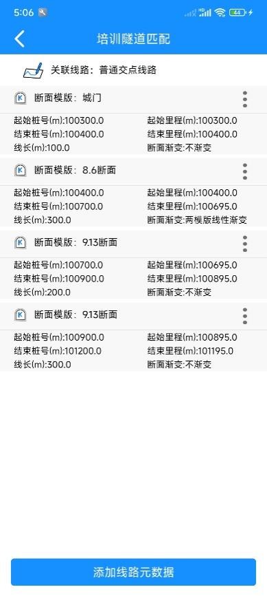 用于将不同桩号段所使用的断面模板进行匹配,在后续功能使用时,软件可根据测量桩号,自动判断和应用断面轮廓。