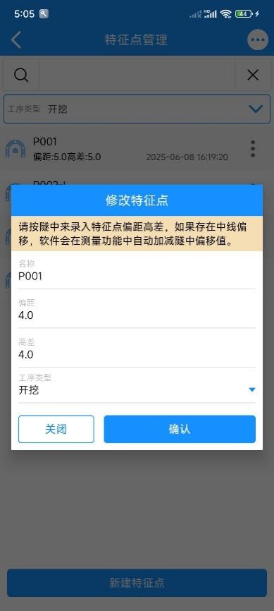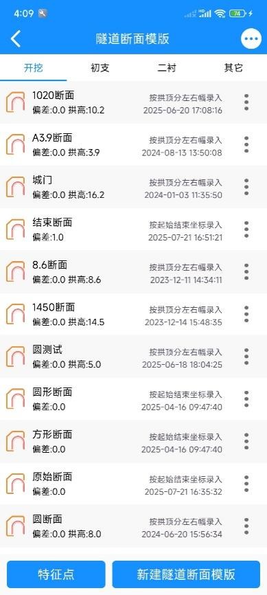 当使用“隧道测量”功能时,若需计算实测点到特征点的上下左右方向指示;可提前录入特征点待用;