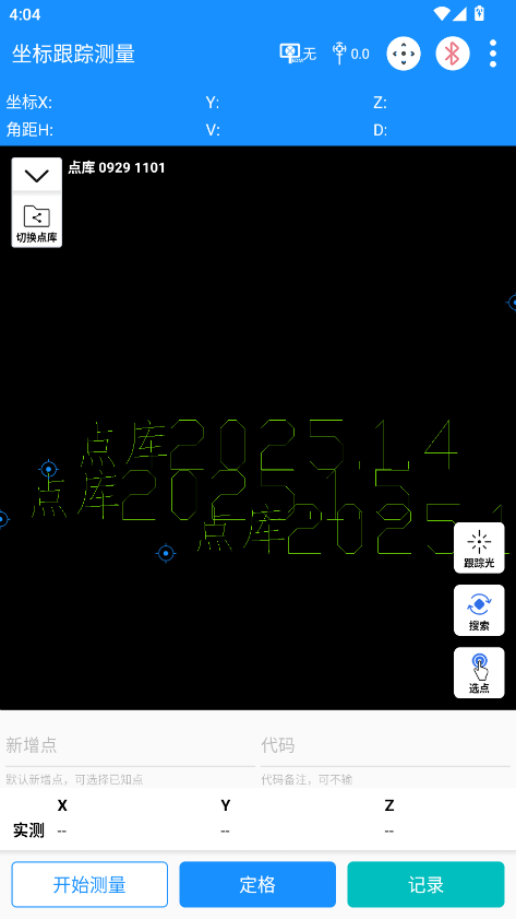 3.点击左侧“切换点库”选择已知点点库,也可新建点库测量新增点;
