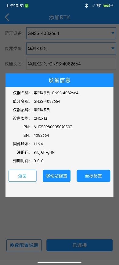 ④确认上述信息无误后点击“连接”按钮,如成功,则会弹出该设备基本信息;